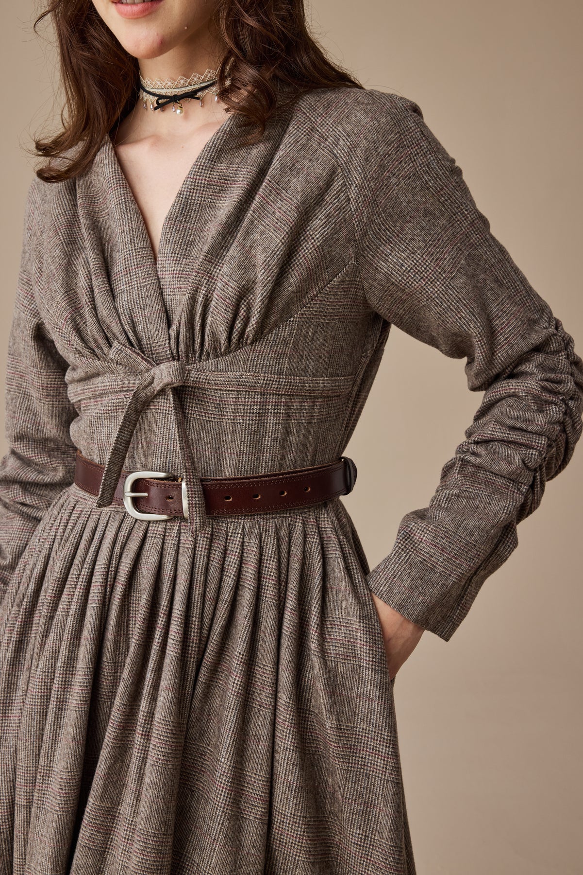 Embrace the timeless allure of elegance with this exquisite wool dress— a garment that whispers of strolls along the Seine, café au lait in hand, and the effortless chic that defines French style.