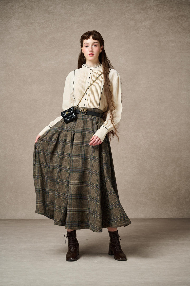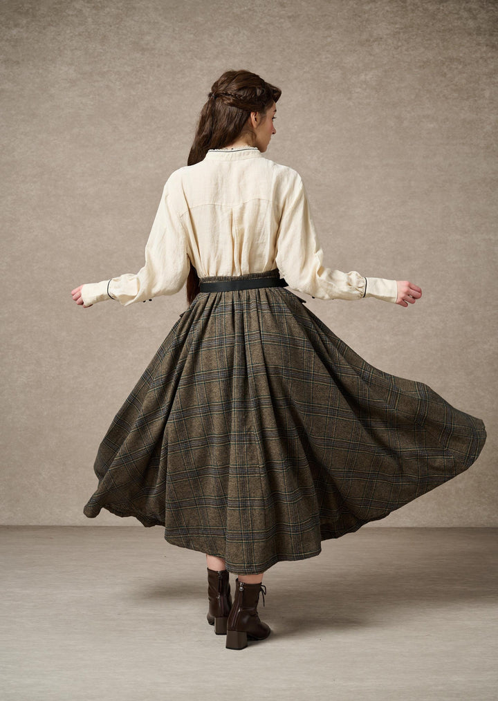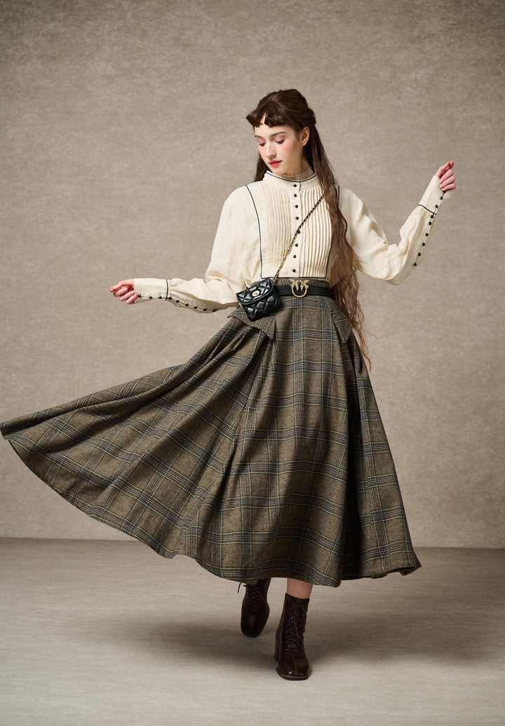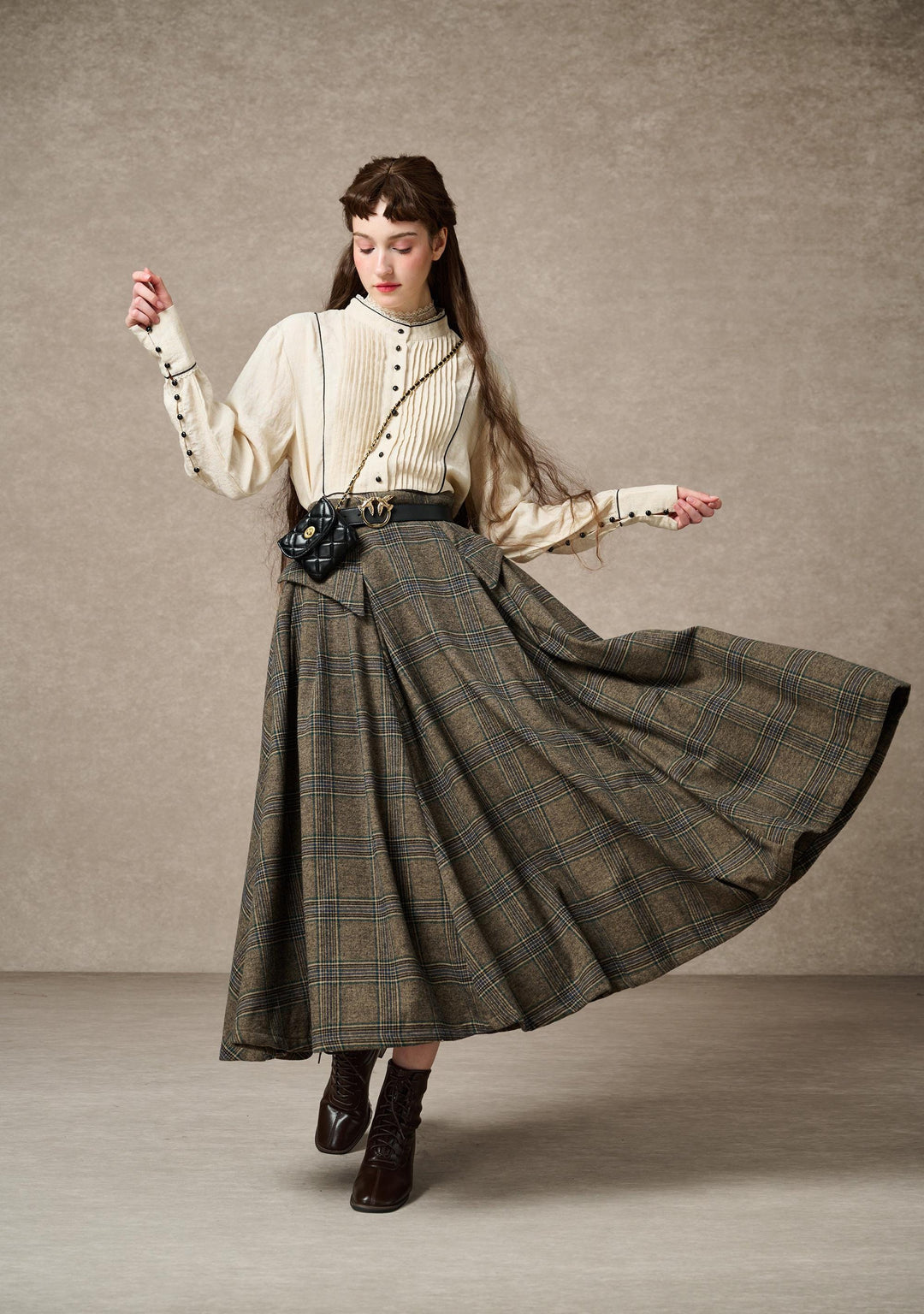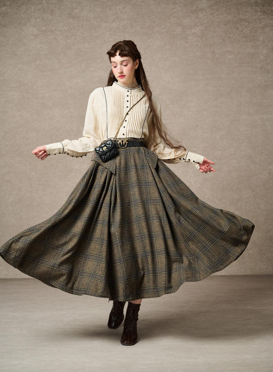 Imagine strolling through a meadow, the soft wool gently swaying with each step. The skirt's graceful silhouette and delicate pattern evoke a sense of romance, transporting you back to a bygone era of refined charm.