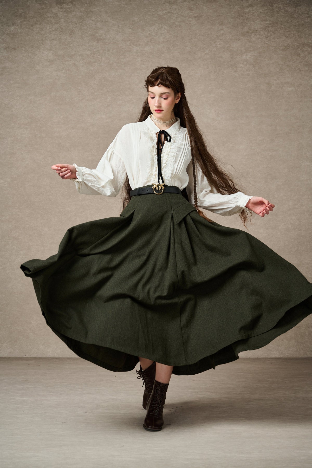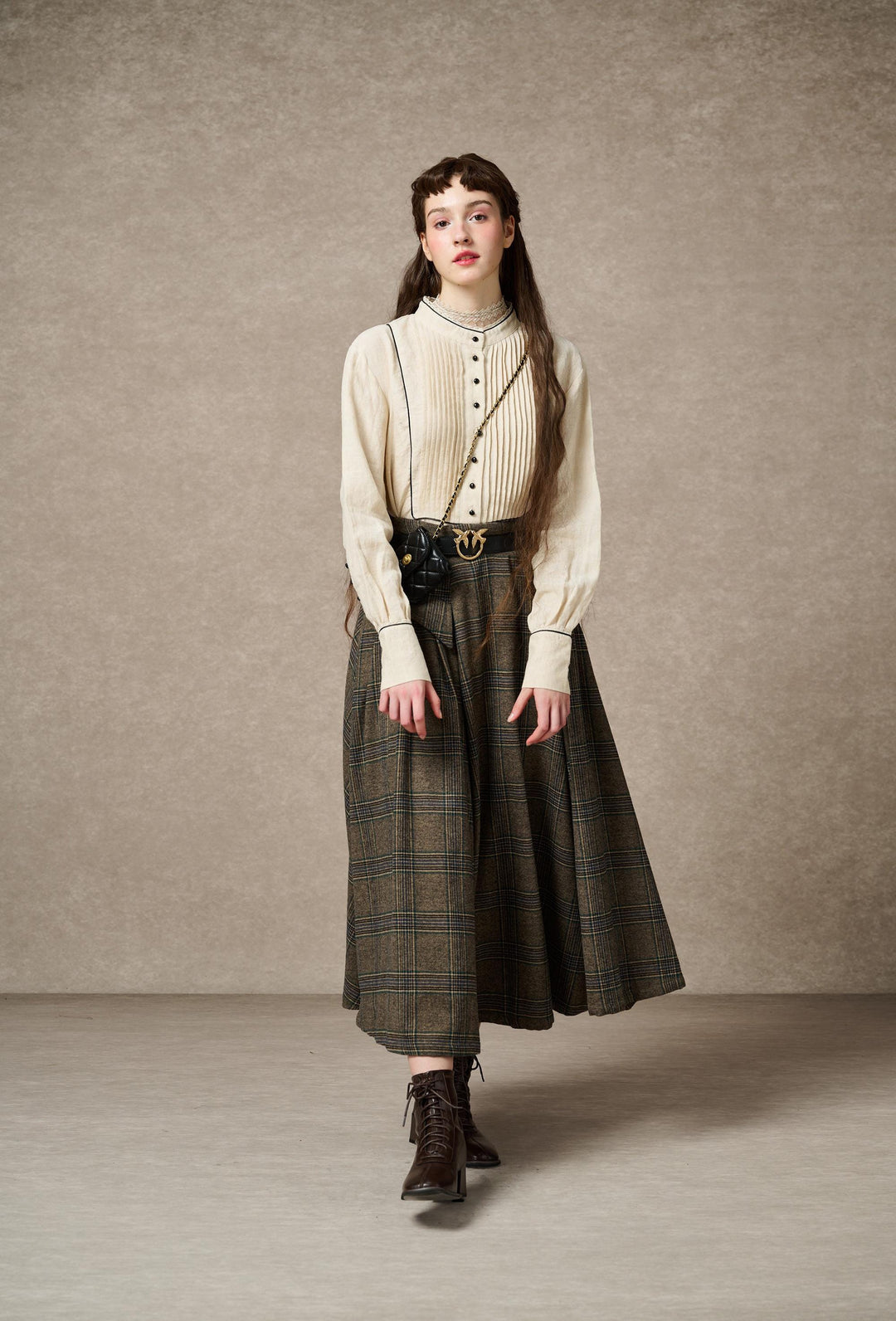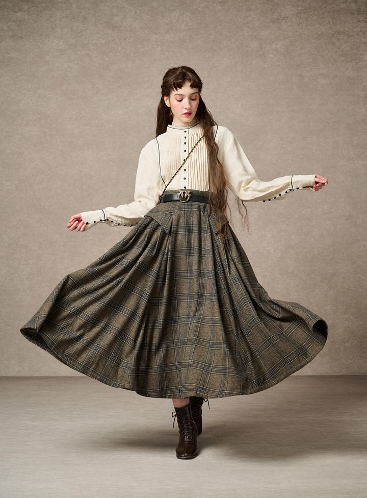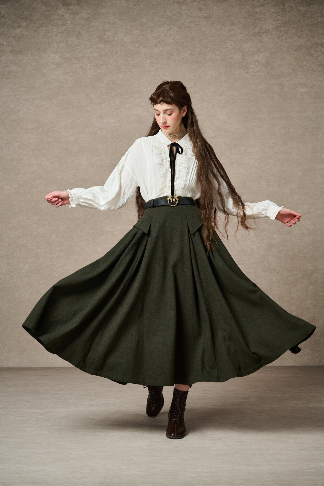 Imagine strolling through a meadow, the soft wool gently swaying with each step. The skirt's graceful silhouette and delicate pattern evoke a sense of romance, transporting you back to a bygone era of refined charm.