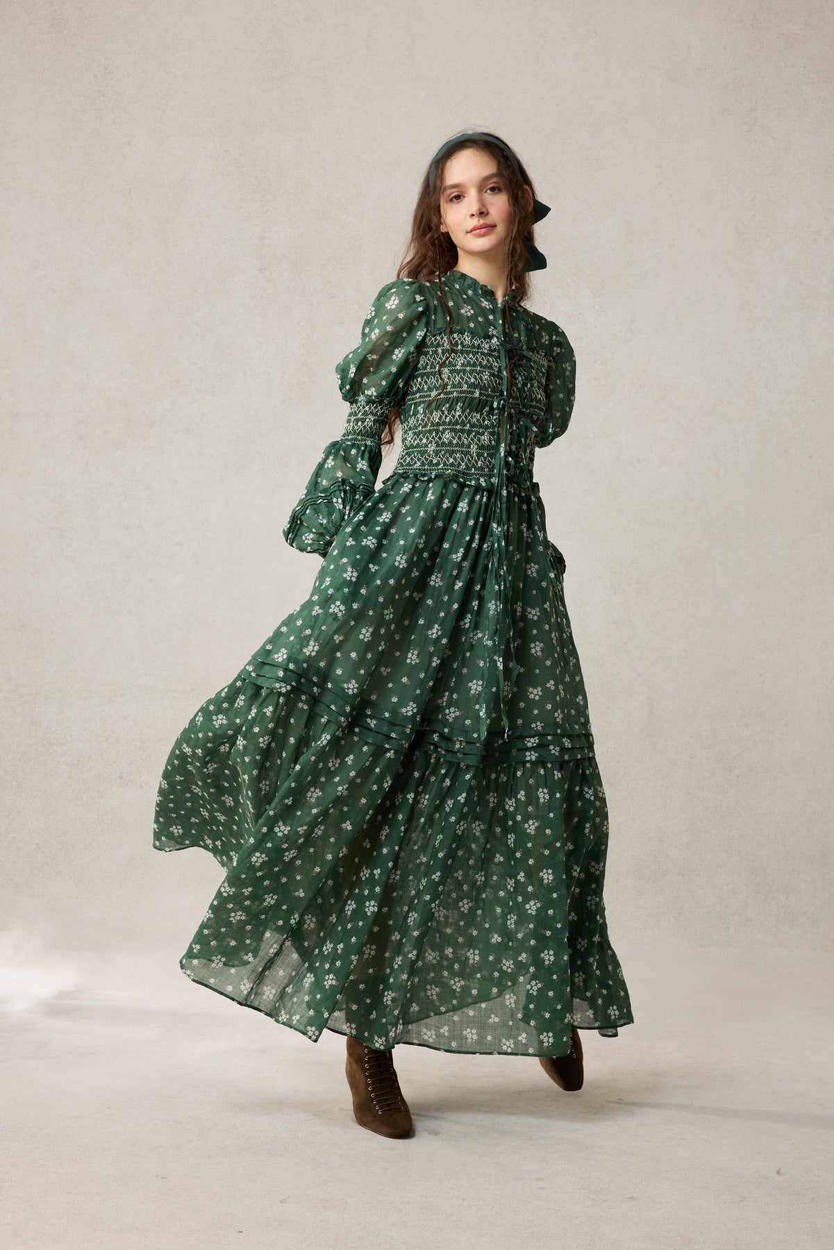 The flowing silhouette sways gently with every movement, like a lily-of-the-valley bud in the wind, creating a playful and charming look. It's the perfect drees for a garden party, afternoon tea, or a leisurely autumn stroll.