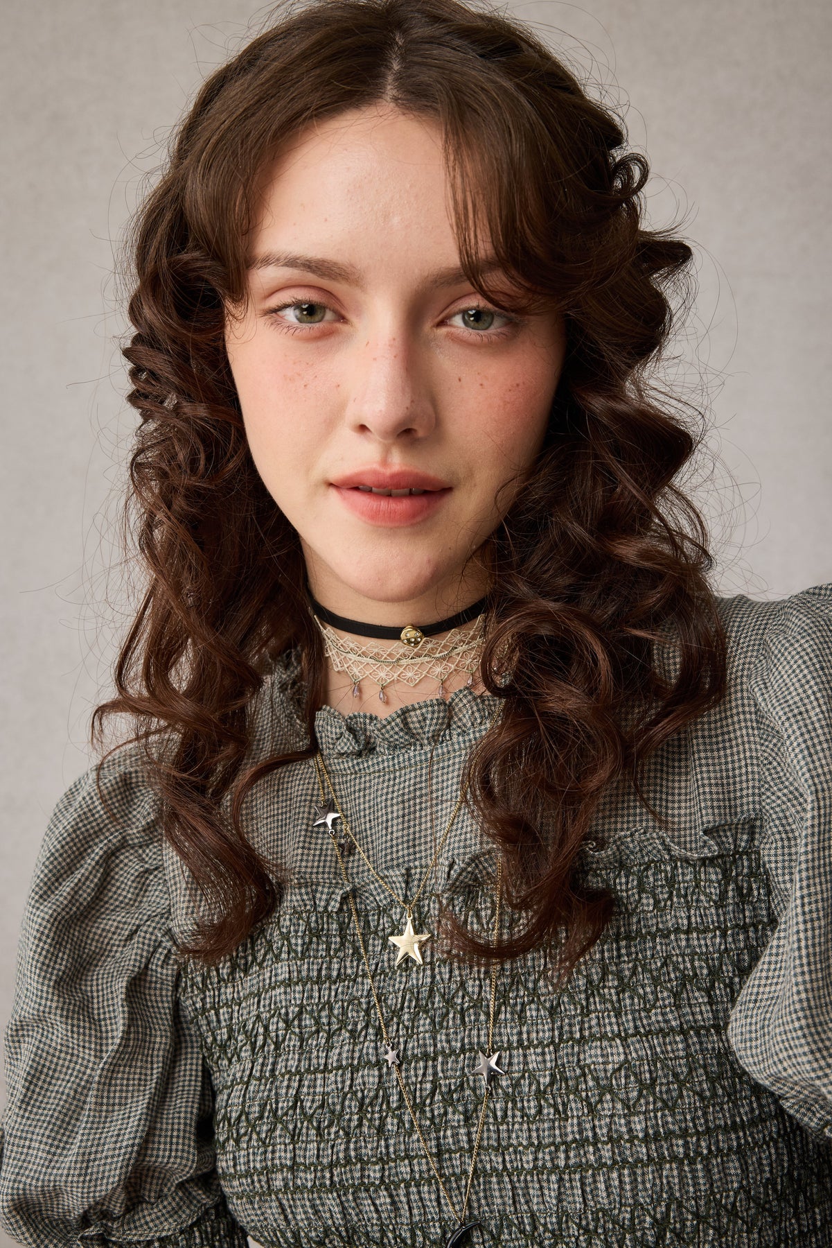 The flowing silhouette sways gently with every movement, like a lily-of-the-valley bud in the wind, creating a playful and charming look. It's the perfect drees for a garden party, afternoon tea, or a leisurely autumn stroll.