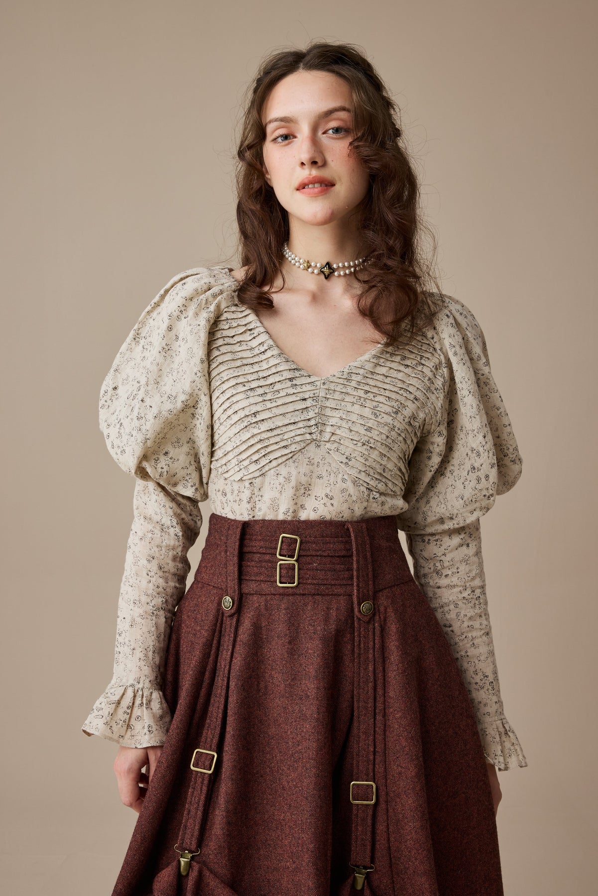 The delicate pleats, each meticulously crafted, infuse the shirt with an elegant charm and a unique sense of layering, evoking endless romance and tenderness.