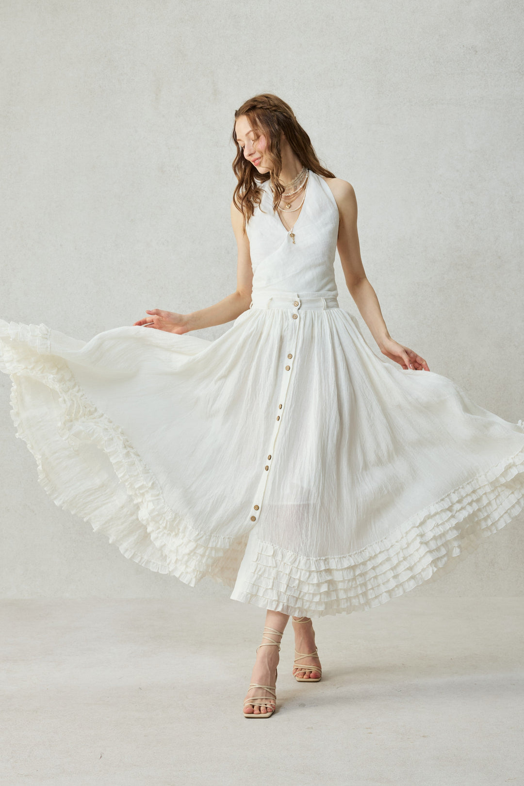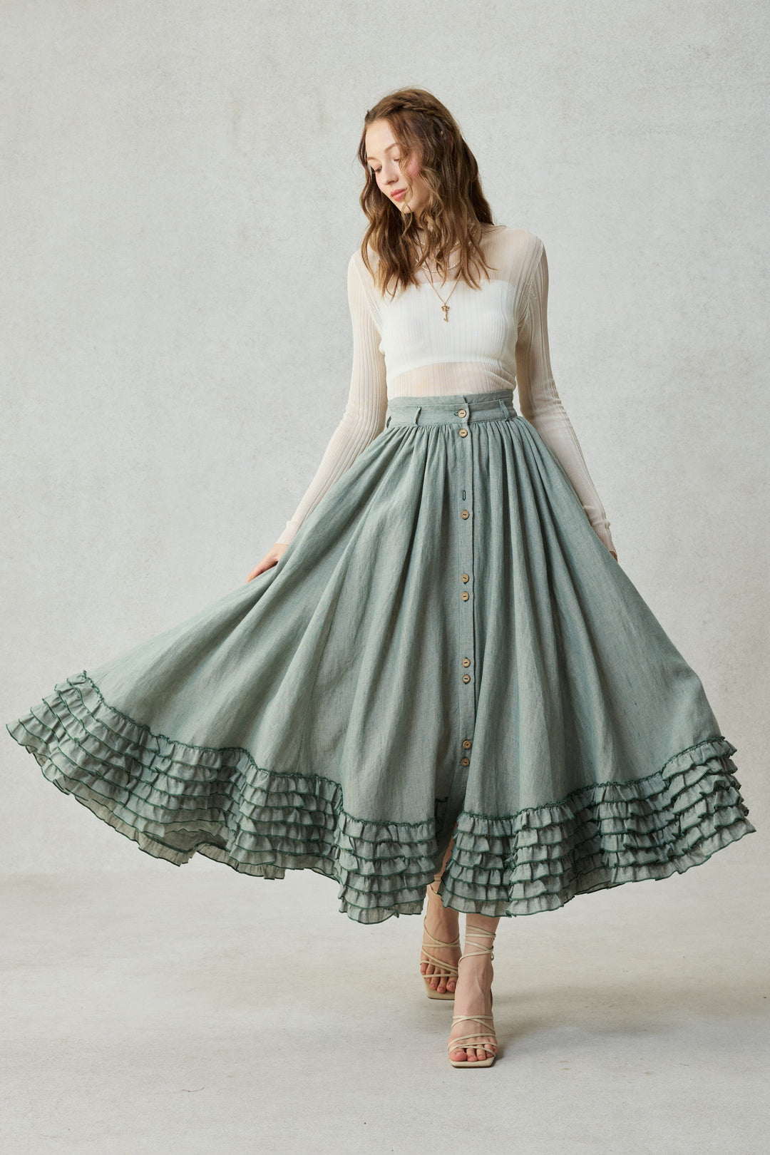Dorothy 27 | Ruffled maxi linen skirt