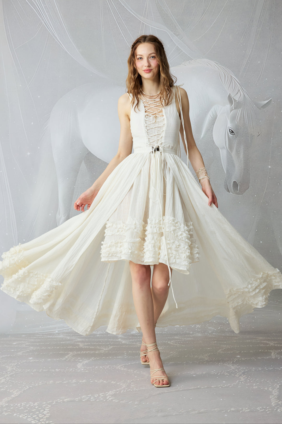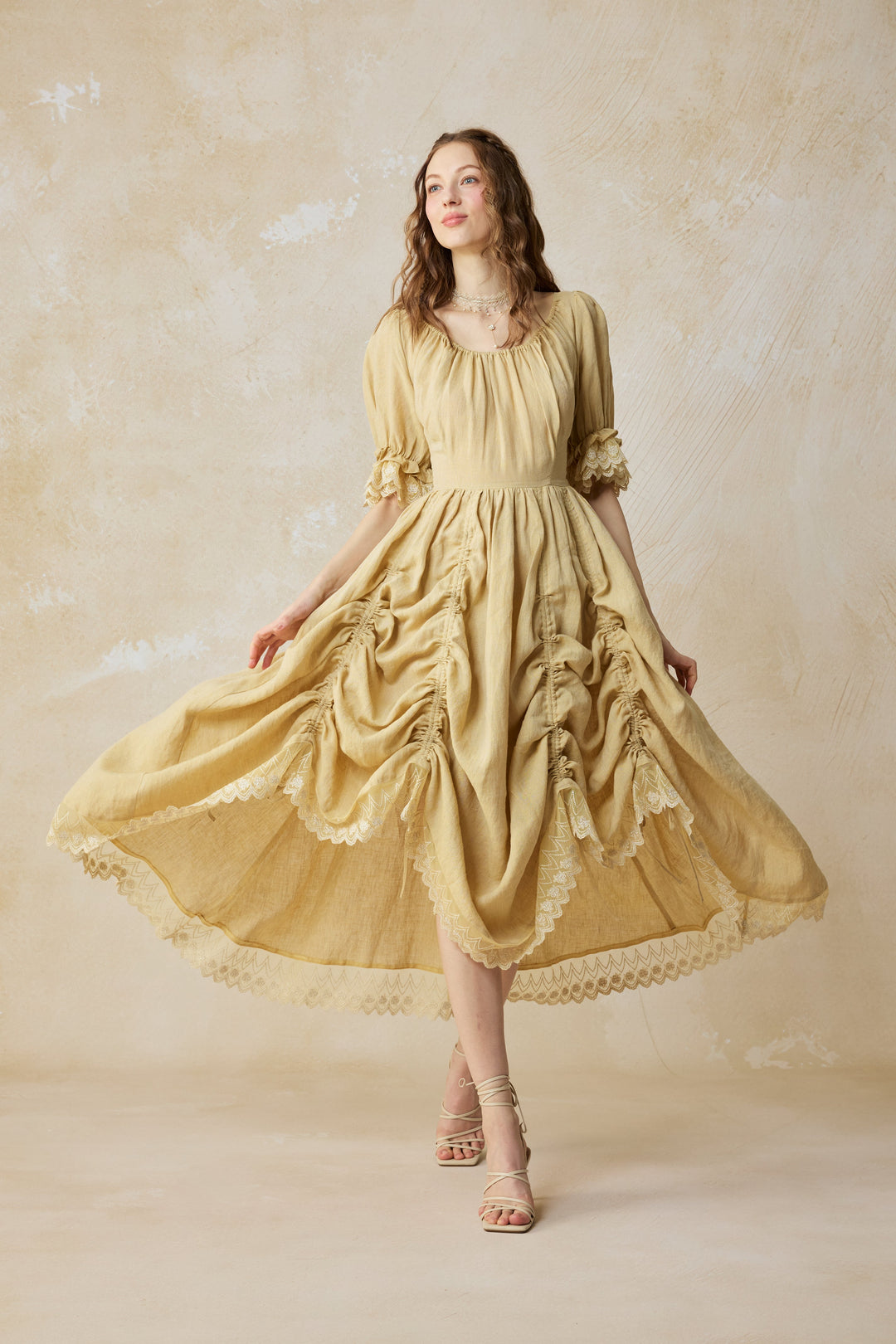 Monet Haze 26 | Fairy layered Linen Dress with pintucks
