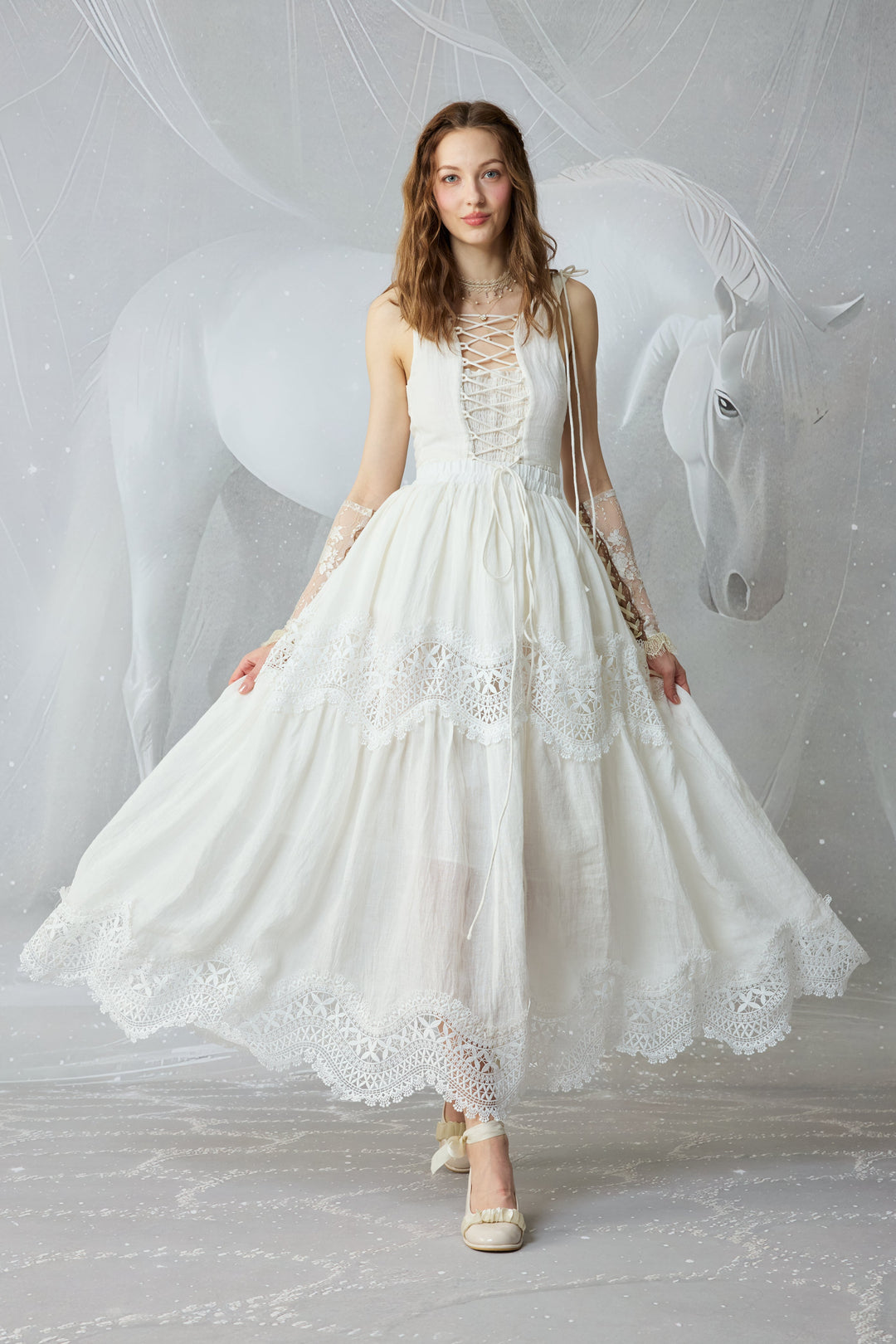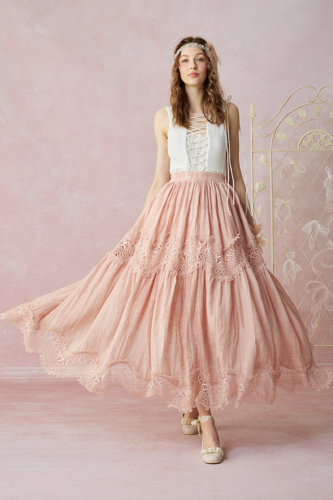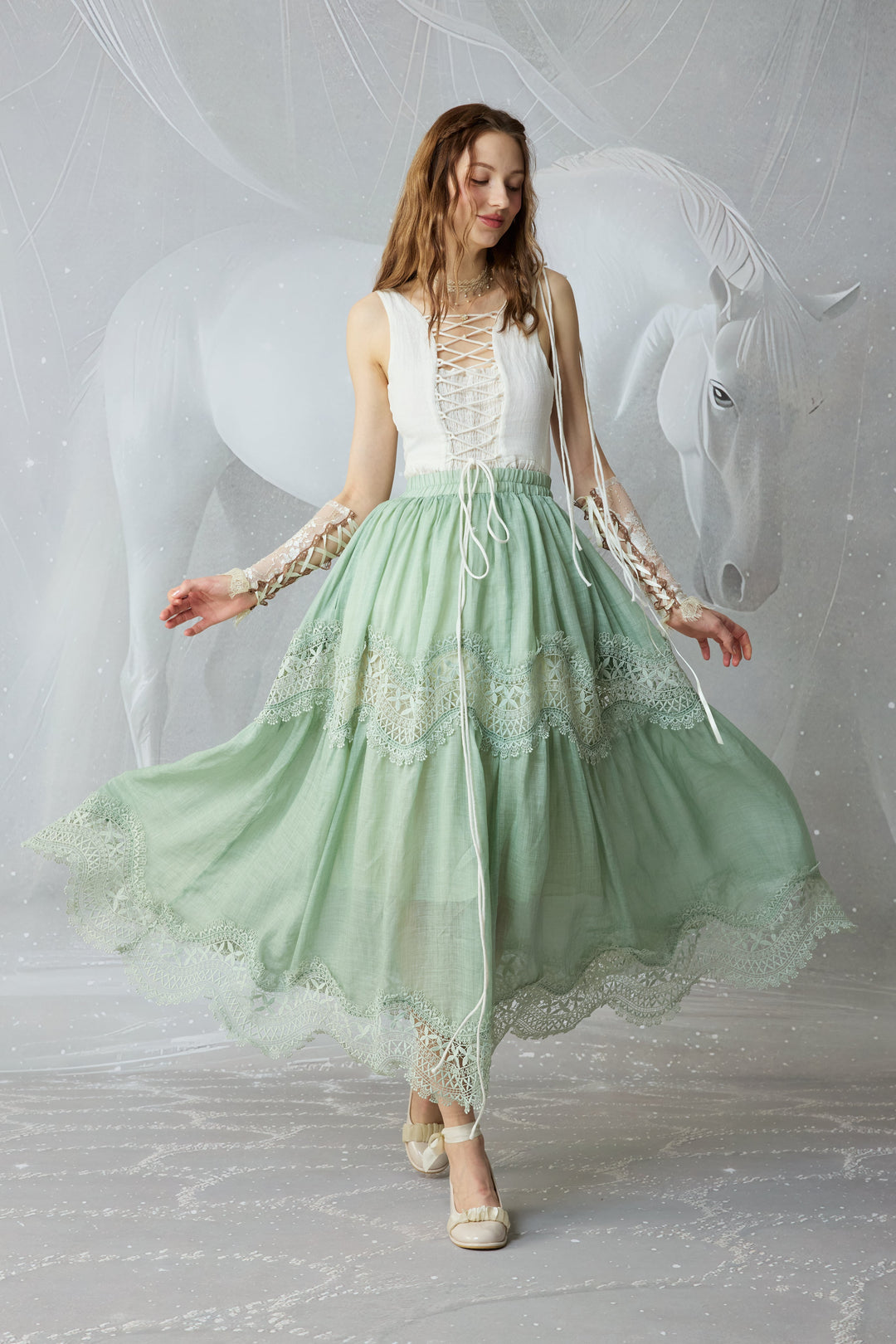 Moonstone 22 |Lace linen Maxi skirt