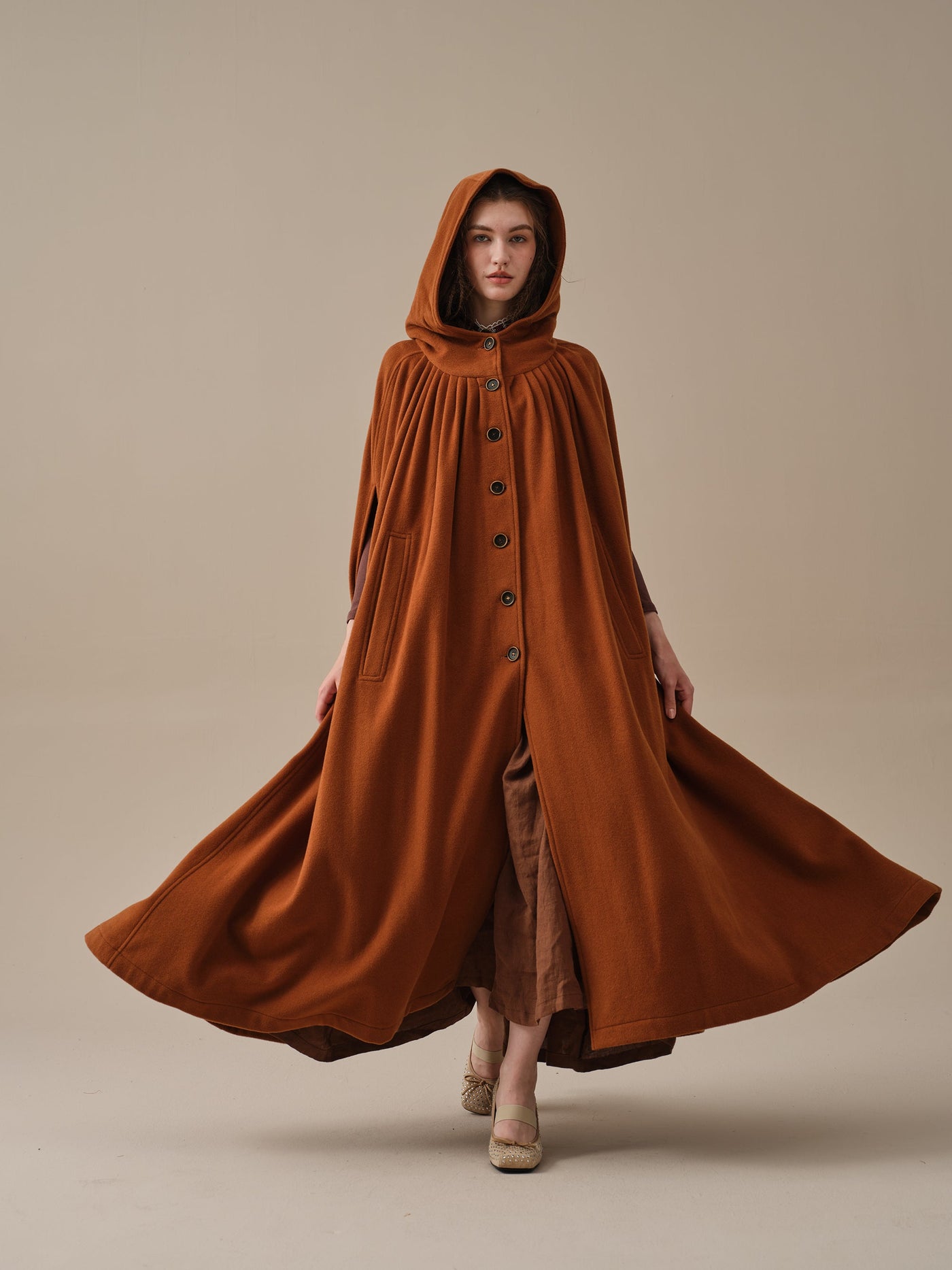 ARIEL 14 | HOODED WOOL CLOAK COAT