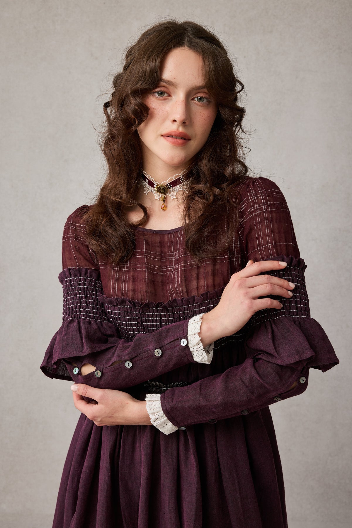 Featuring a colorblock design, the airy linen fabric is light and charming. Imagine yourself running through endless lavender fields, the soft fabric floating around you, and the floral fragrance filling the air.