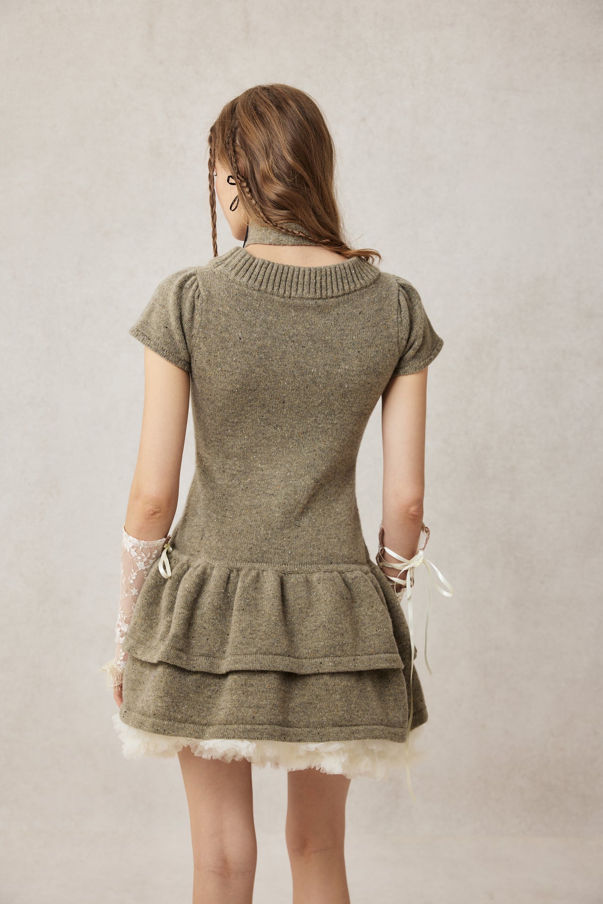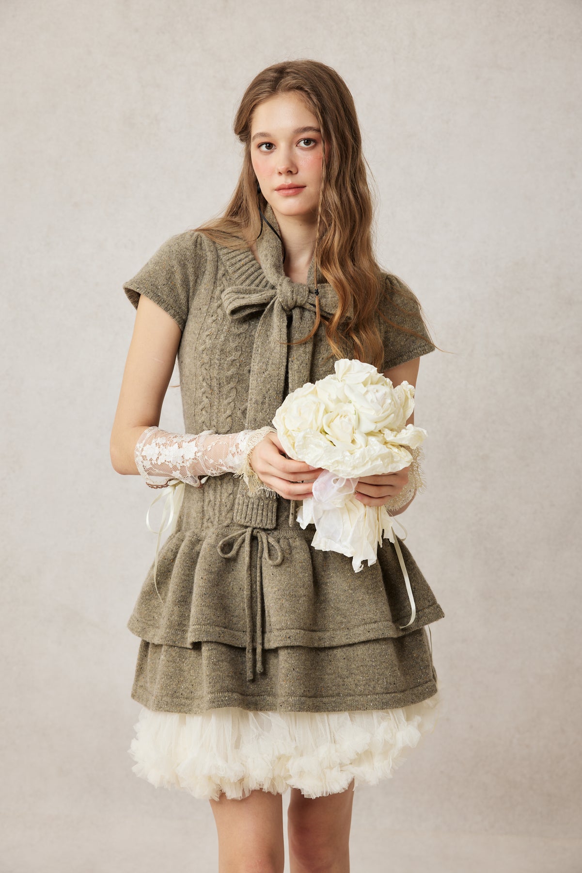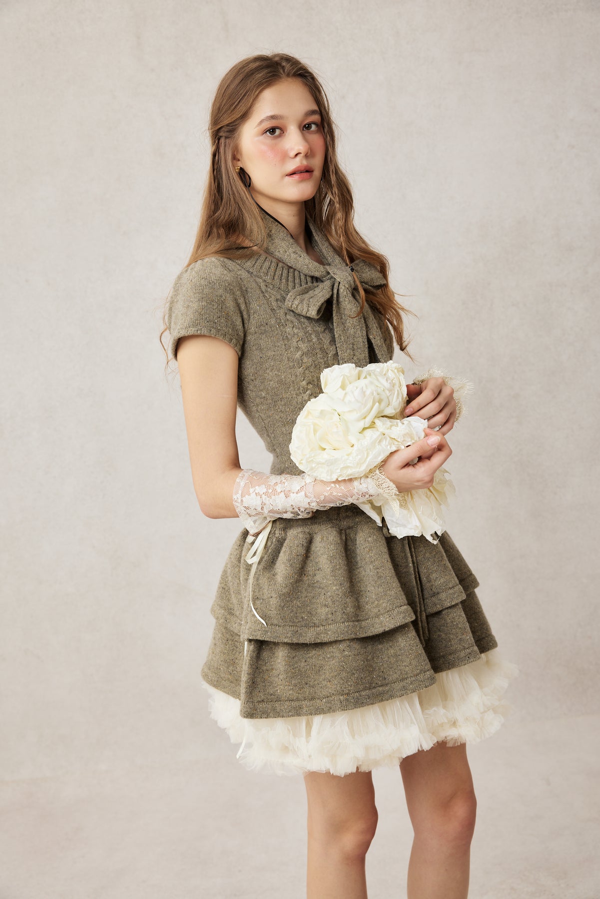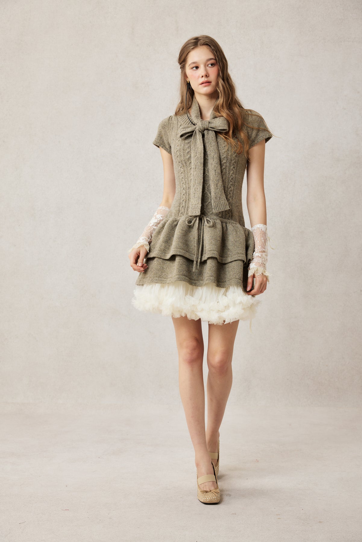 Lilypond 13 | 100% Wool Cable Knit Tiered Dress with scarf