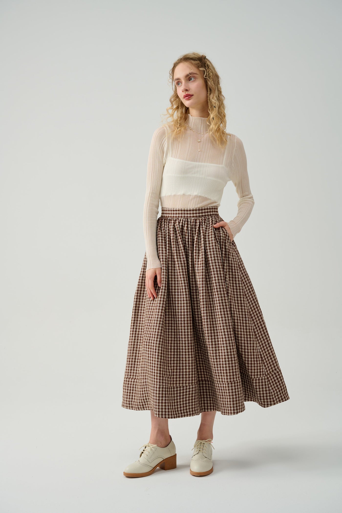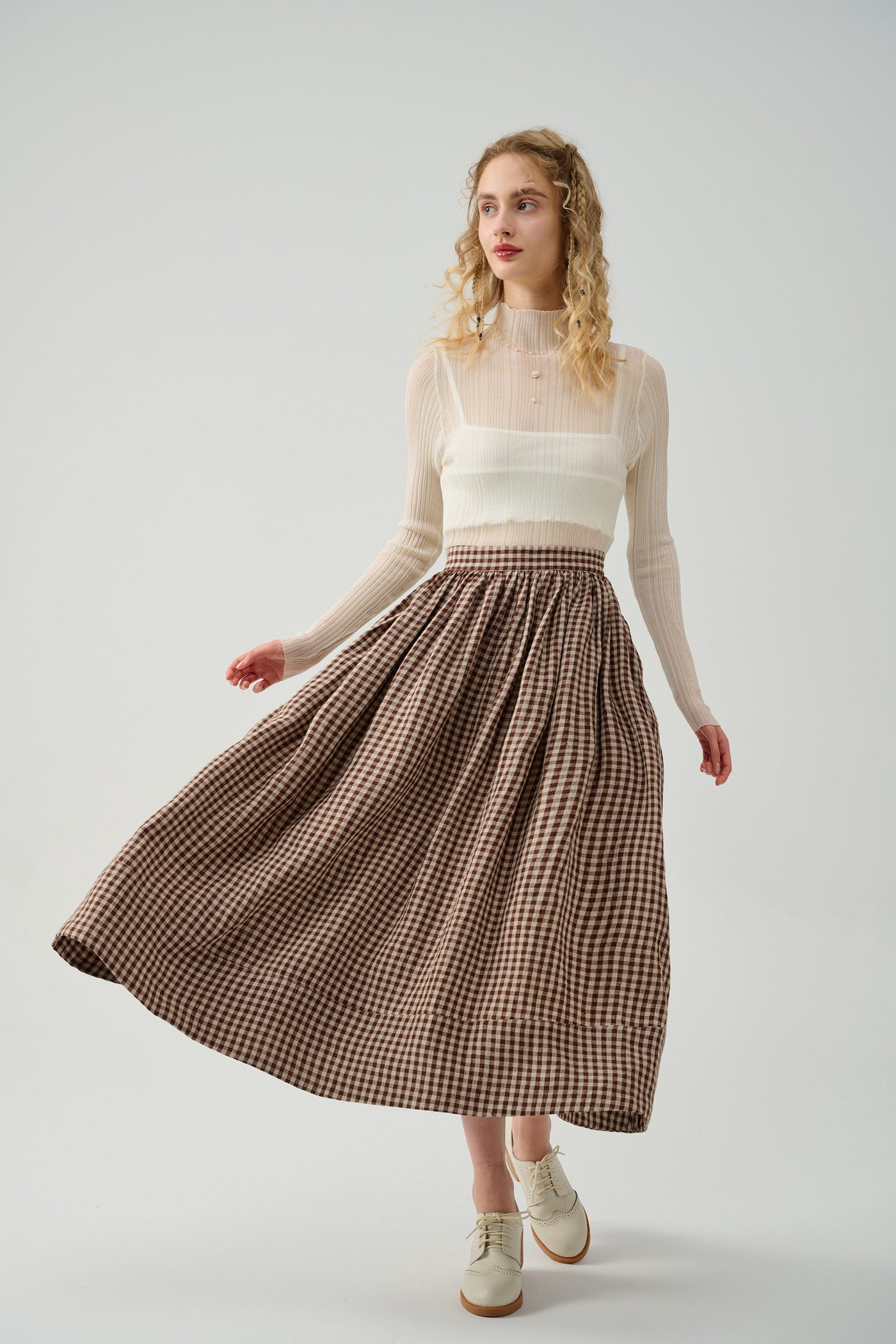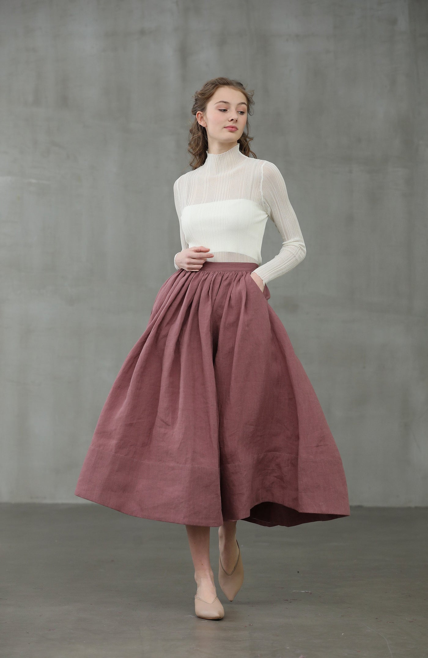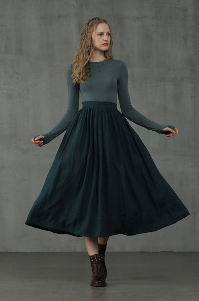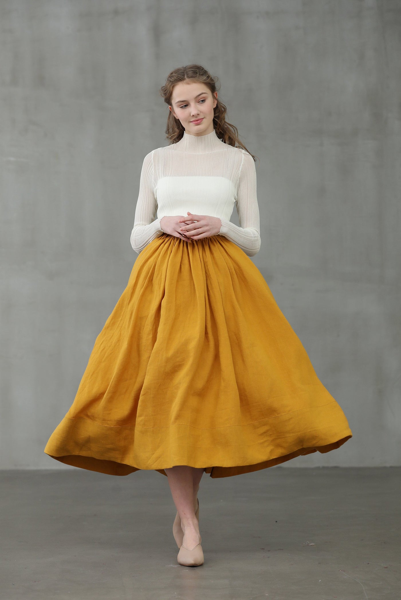 Waistline. Sometimes we feel something was so wrong when we put a skirt on. One of the most important element is the position of its waistline. Our designers have tested and made a few samples in order to set a correct waistline, and also not sacrifice any comfortable feeling that a linen skirt should be. Comfortable first. Our skirts now have 6 sizes ( to fit waist around 68 cm-95cm) Do you need other sizes too?