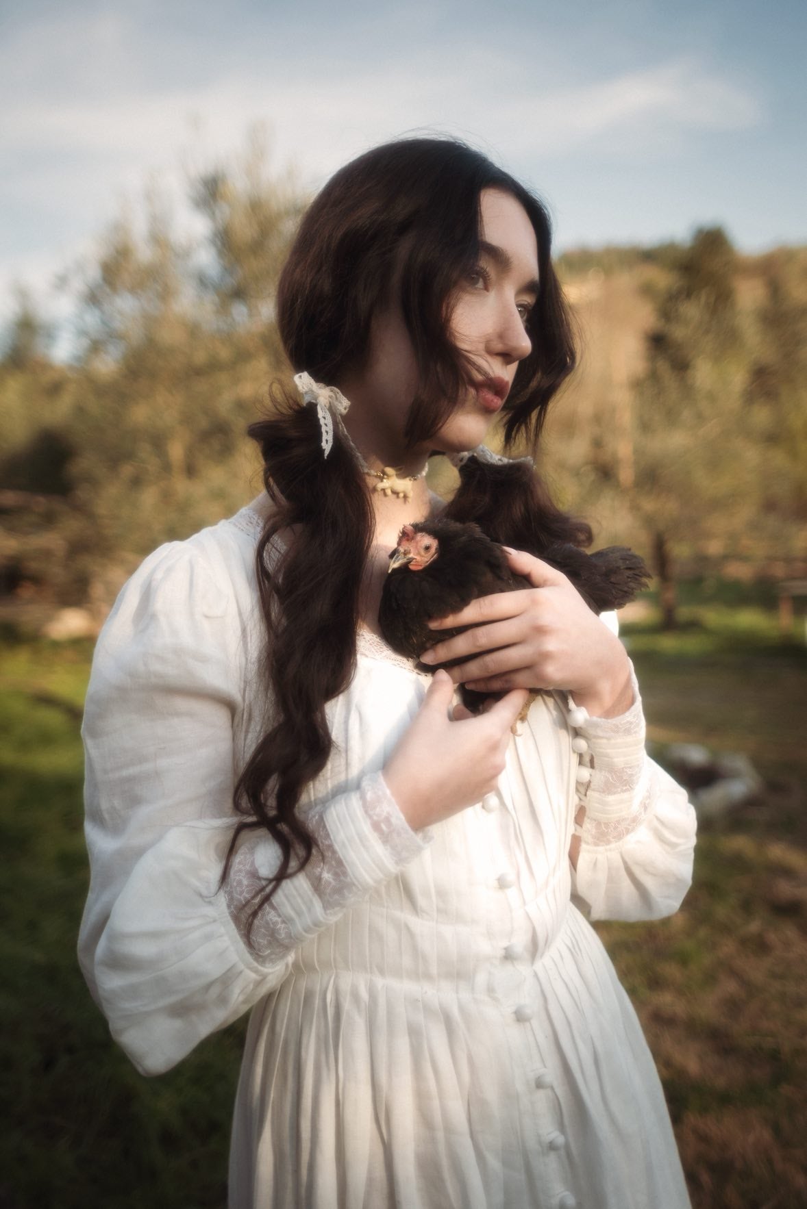 Delicate handwork on pure linen. Ethereal texture & romance, feather-light & breathable.