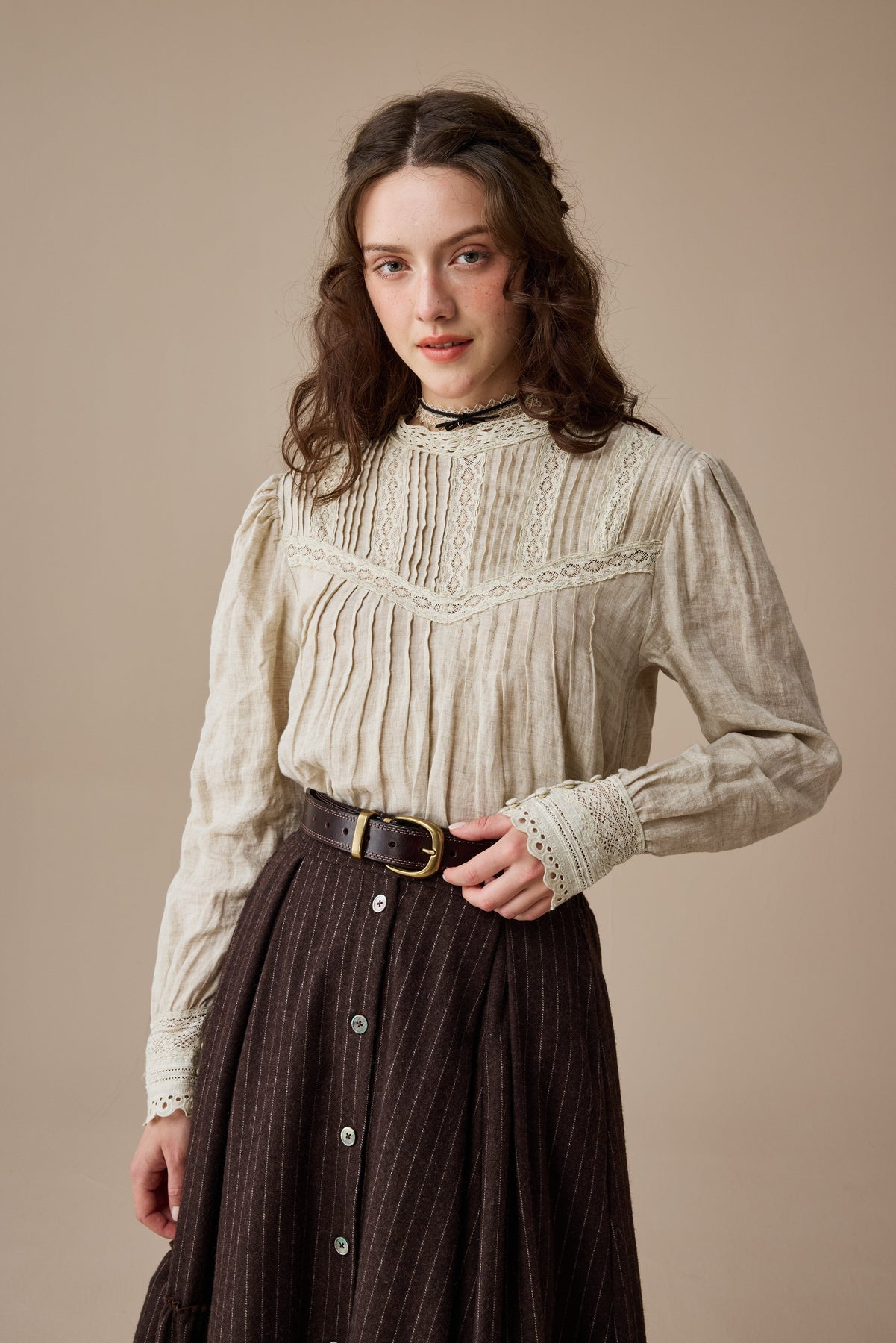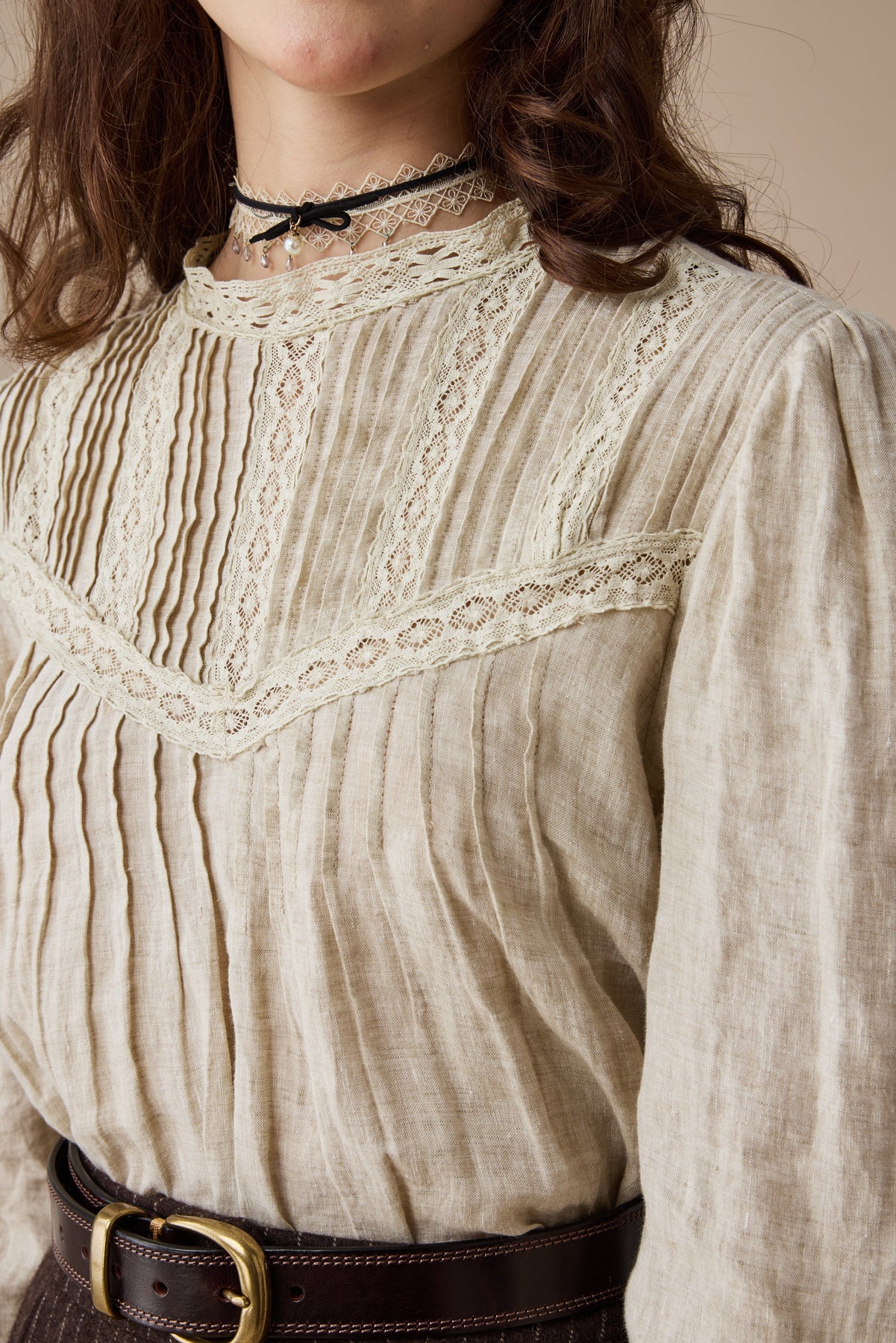 This linen blouse exudes an effortless elegance, perfect for those who cherish retro-inspired style.