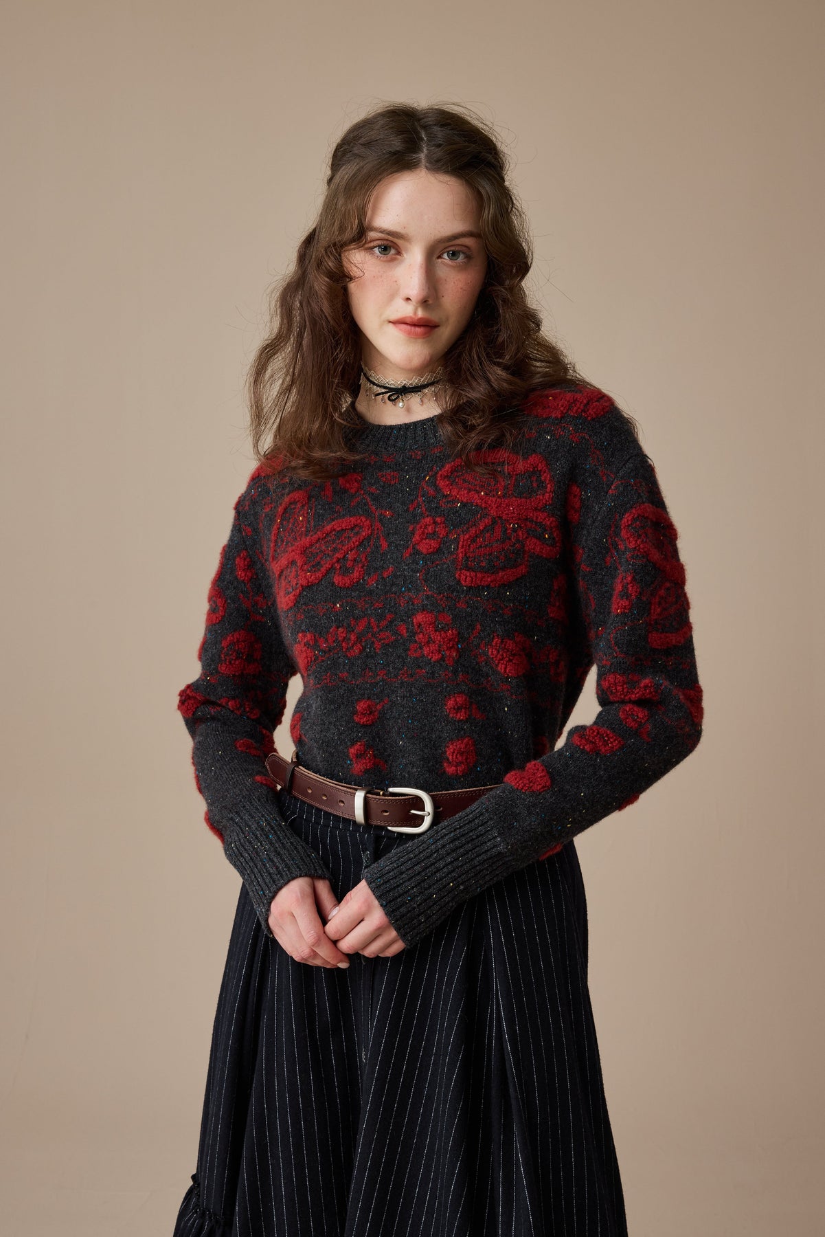 Edwardian style is great for a lazy day as it looks lovely with a flowing skirt. The quality of the knit ensures durability while maintaining the delicate appearance that makes this piece so special.