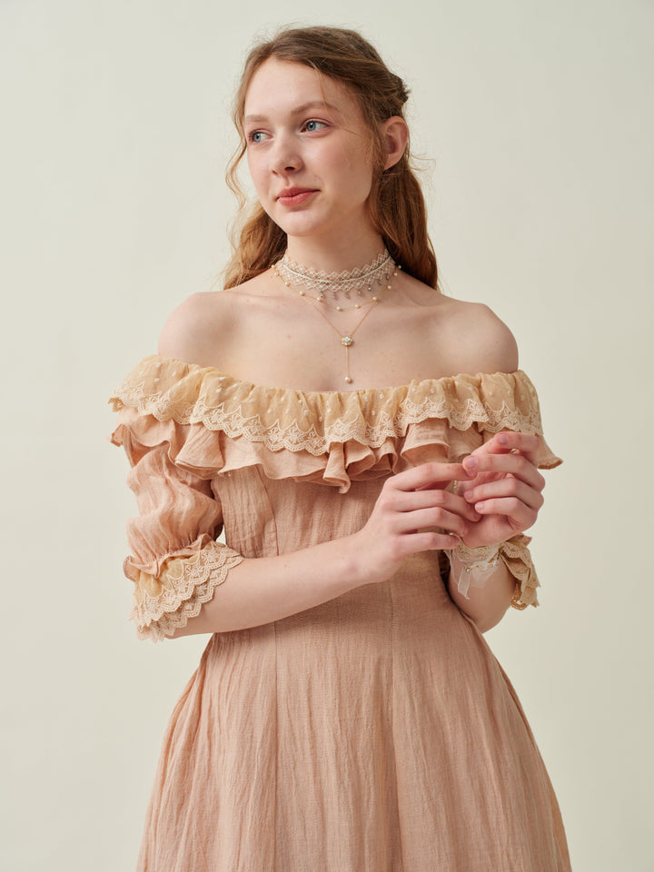 Imagine yourself in a majestic castle, enveloped in soft candlelight, ready to hit the dance floor in this stunning dress. As you twirl to the music, the delicate lace and ruffle details will sway gently with your every turn, So remember to unleash unforgettable glamour.