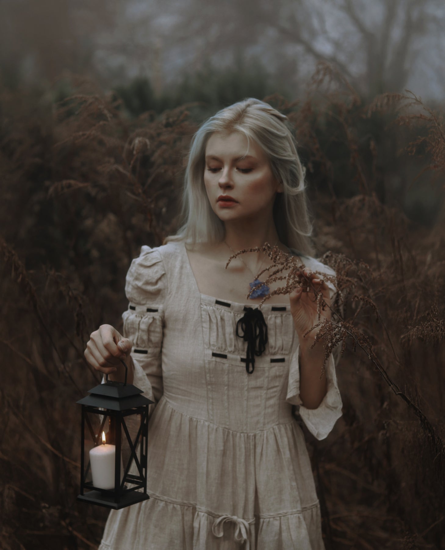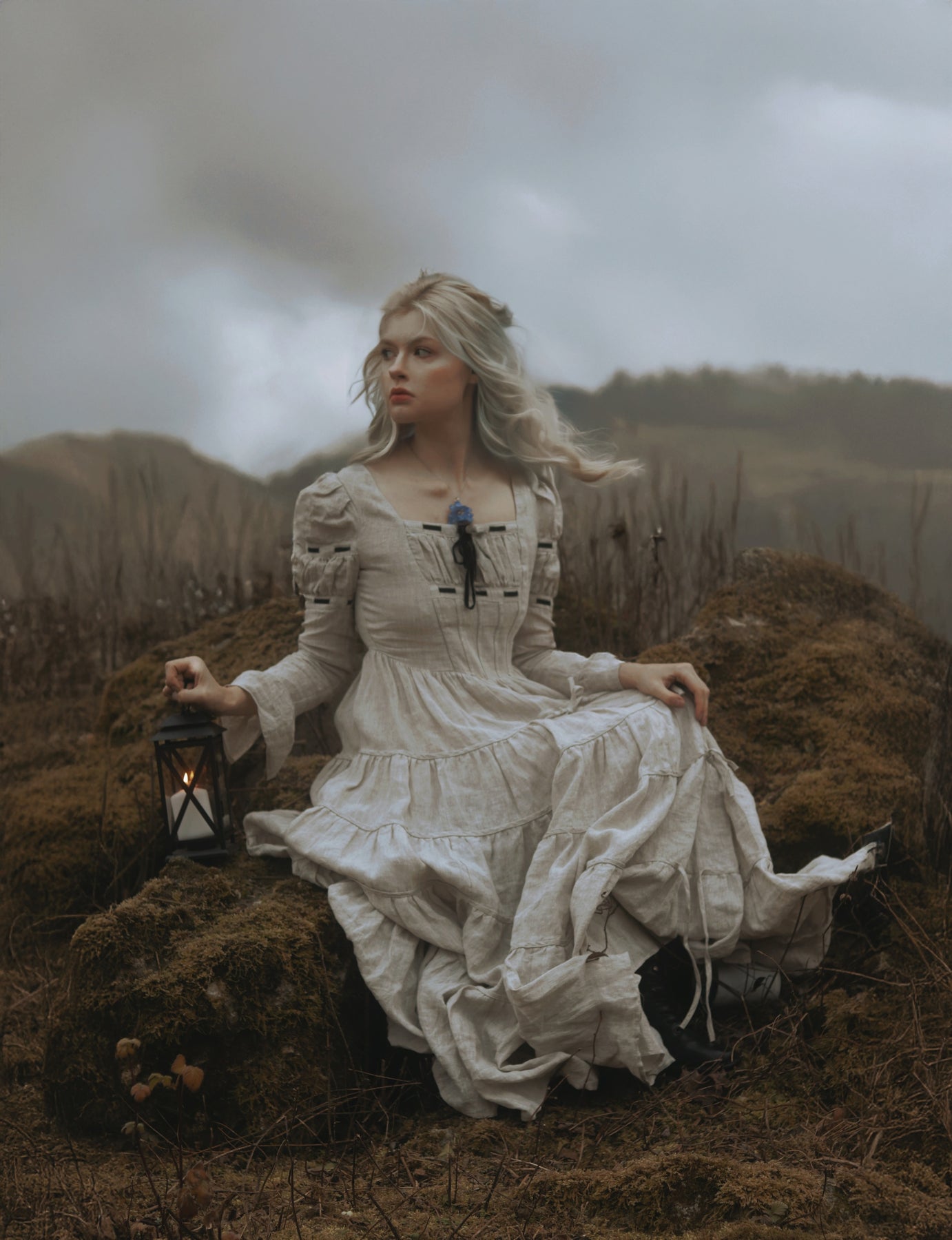 Velvet dusk captured in linen folds. A chromatic ode to moonlit gardens where botany met fine arts.